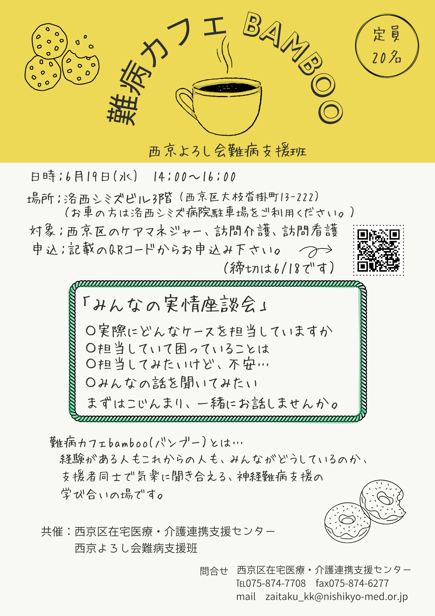 対象 | 西京区のケアマネジャー、訪問介護、訪問看護 |